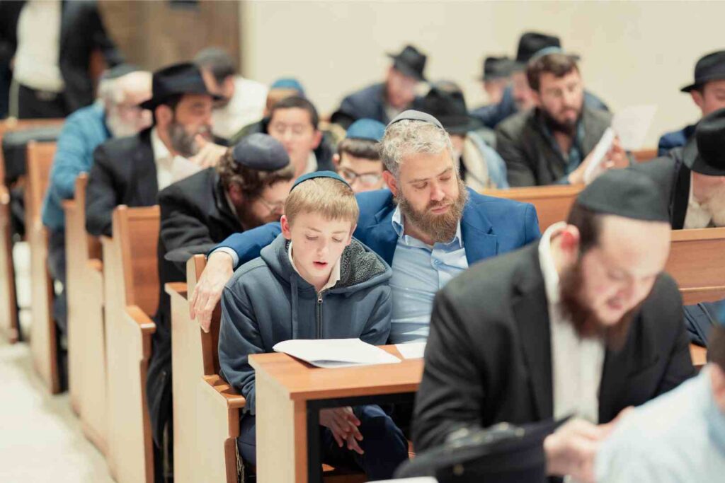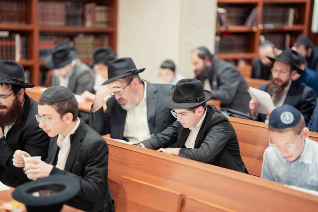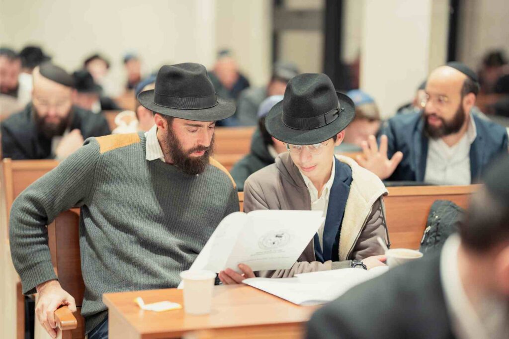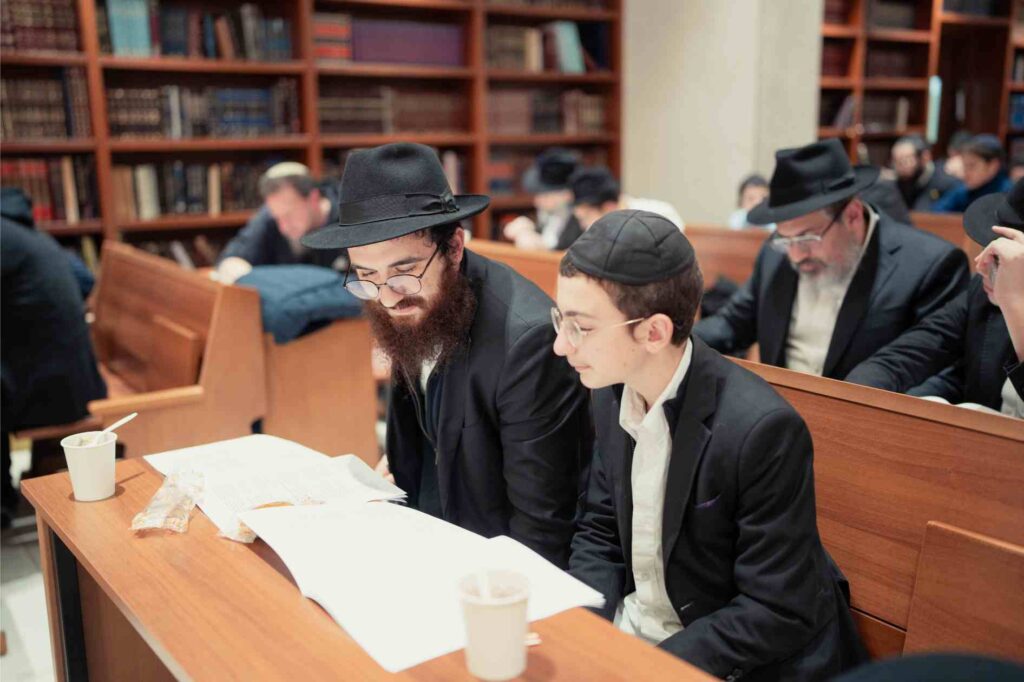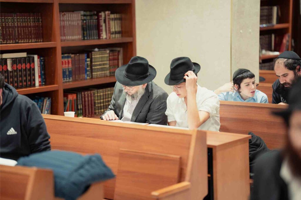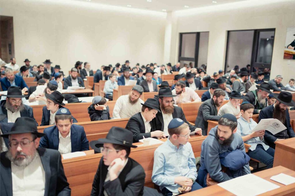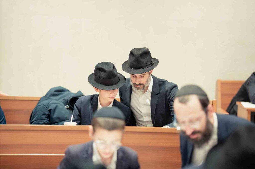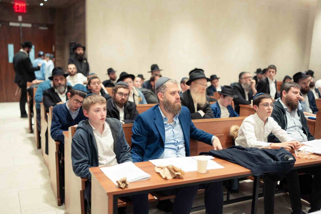 In honor of Chof Cheshvan, the birthday of the Rebbe Rashab and the founder of Tomchei Temimim, fathers of the Mechina L’Mesivta talmidim joined their sons for a special evening of learning in the Shul of Tomchei Temimim.