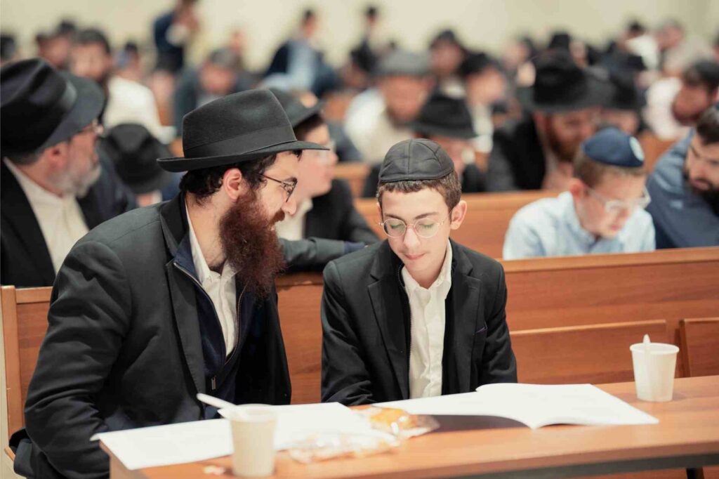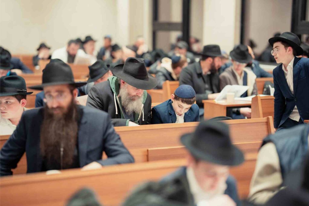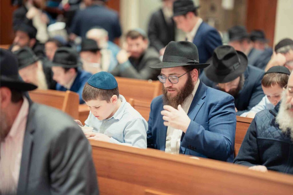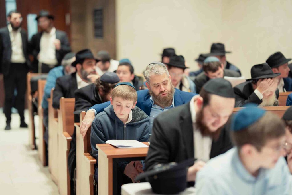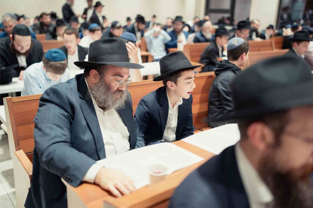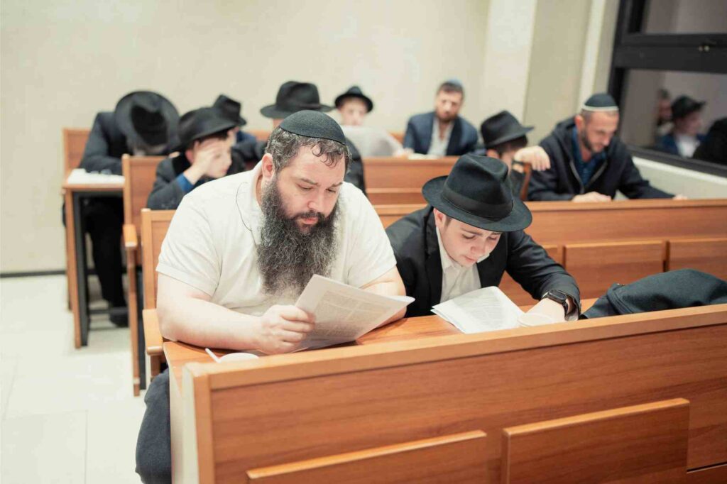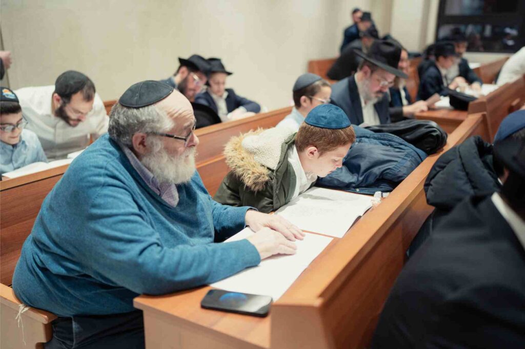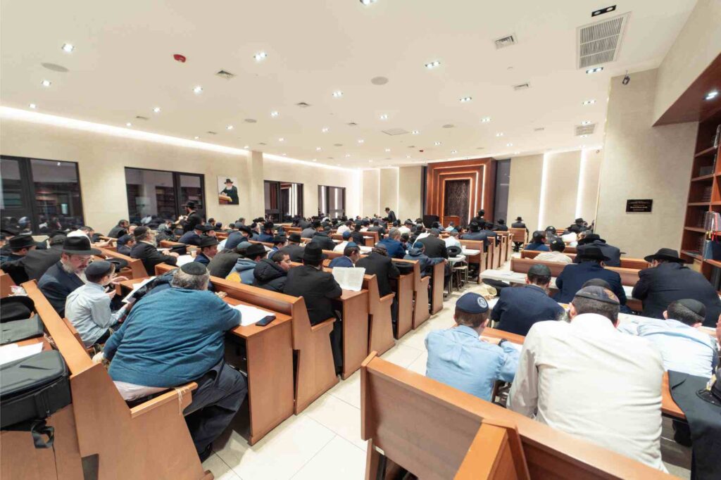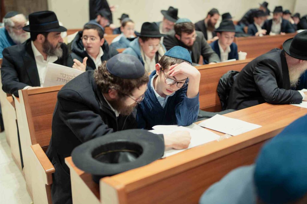 In honor of Chof Cheshvan, the birthday of the Rebbe Rashab and the founder of Tomchei Temimim, fathers of the Mechina L’Mesivta talmidim joined their sons for a special evening of learning in the Shul of Tomchei Temimim.