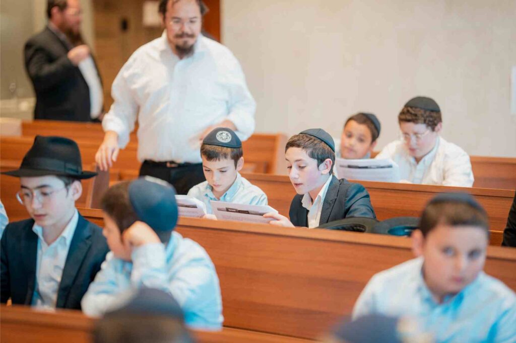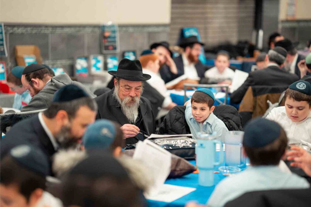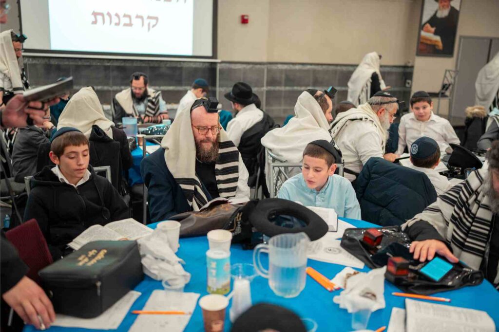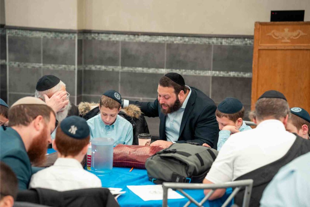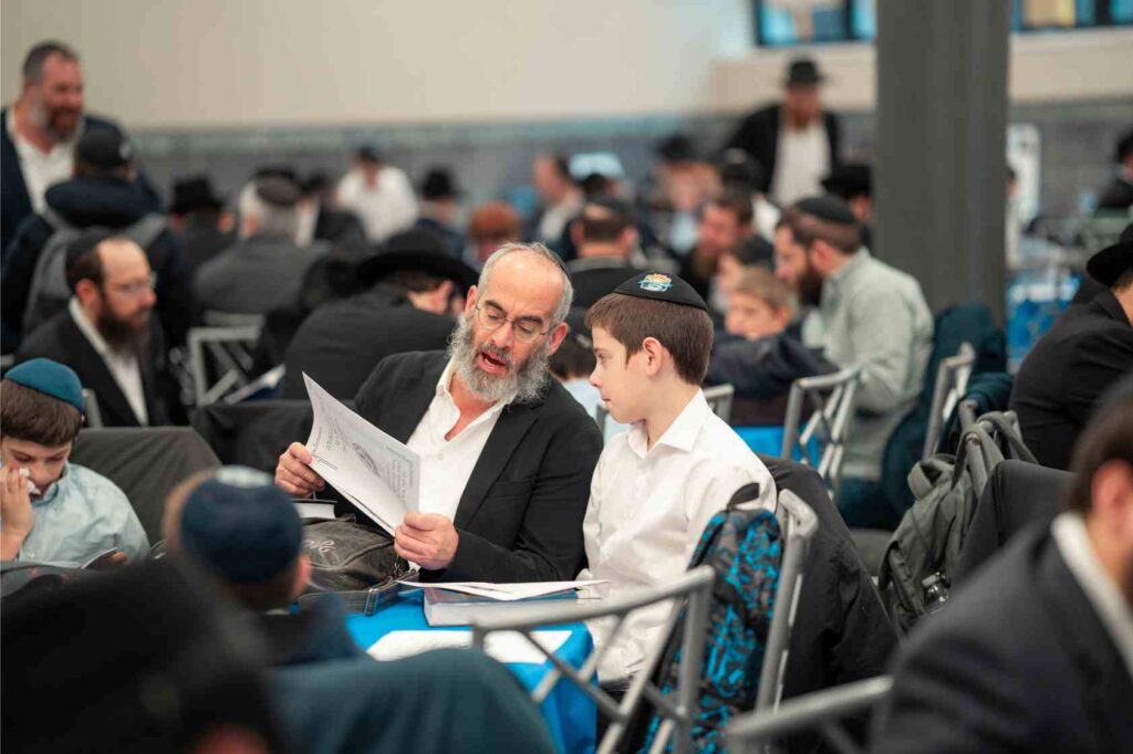 The morning opened with Limud HaChassidus. Rabbi Yosef Aron, principal, shared a few words about the special day, encouraging the talmidim to strengthen their hiskashrus to the Rebbe. Shacharis followed, with fathers, grandfathers, and talmidim davening together in a beautiful tefillah that set the tone for the entire program.