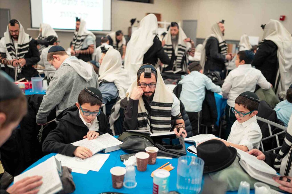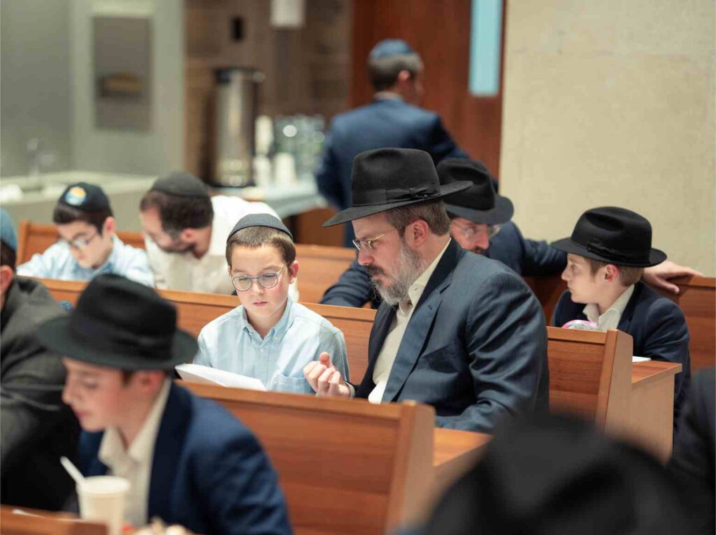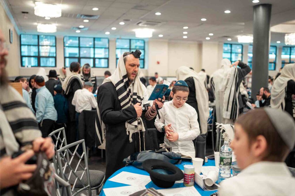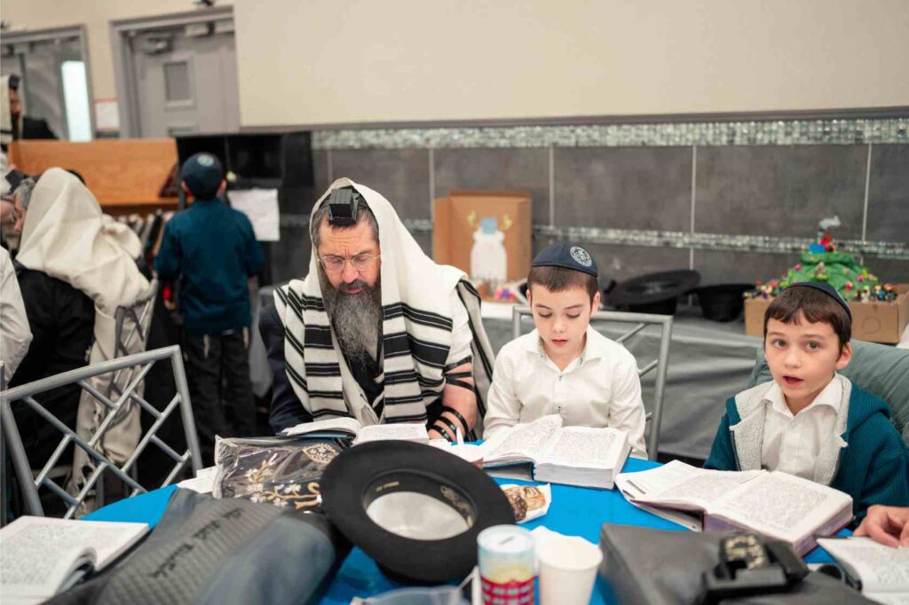 The morning opened with Limud HaChassidus. Rabbi Yosef Aron, principal, shared a few words about the special day, encouraging the talmidim to strengthen their hiskashrus to the Rebbe. Shacharis followed, with fathers, grandfathers, and talmidim davening together in a beautiful tefillah that set the tone for the entire program.