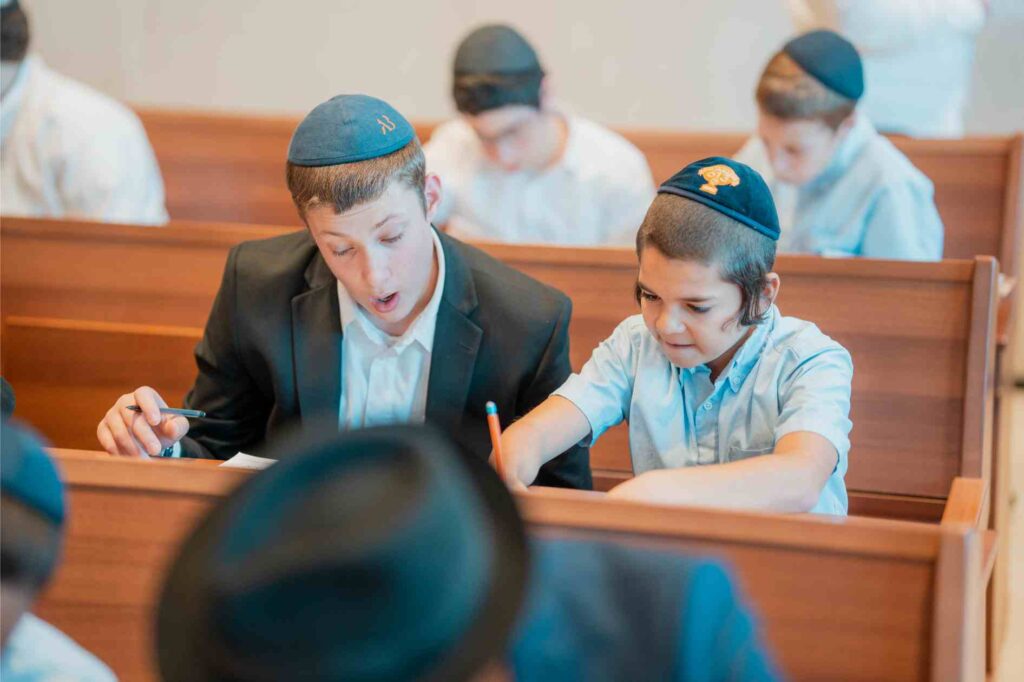 Following their learning, the talmidim filled out a question sheet to review what they had learned and to help internalize the messages of the Rebbe’s words. The sight of older talmidim patiently learning, explaining, and inspiring the younger talmidim was a true demonstration of the ruach of Tomchei Temimim — Chassidim helping and lifting one another higher and higher in learning and avodah.