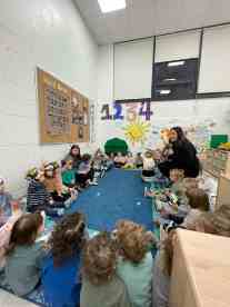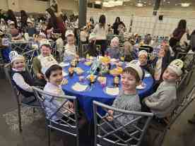 The Preschool had a special breakfast Farbrengen with tables decorated by handmade Tanya-themed centerpieces. The children sang Pesukim and niggunim, enjoyed an interactive storytime with life-size props, and each wrote a letter to the Rebbe. The program ended with a lively L’Chaim and dancing.
