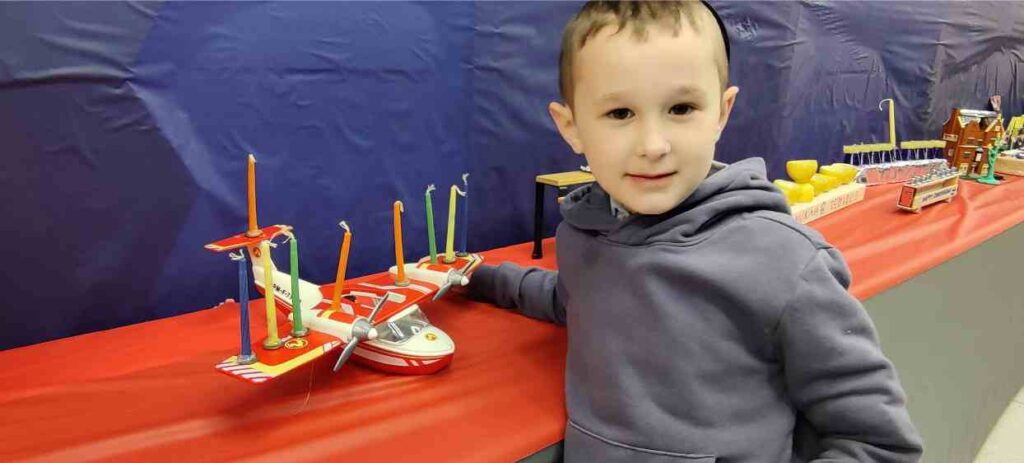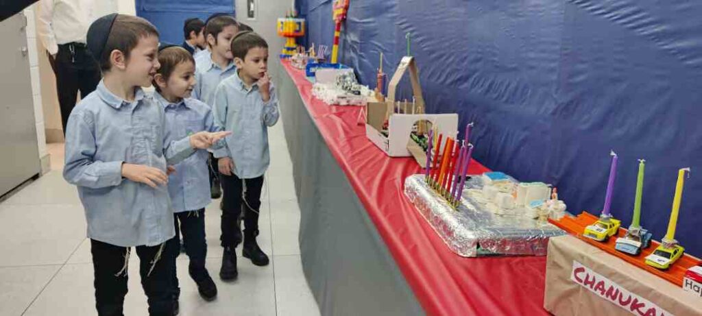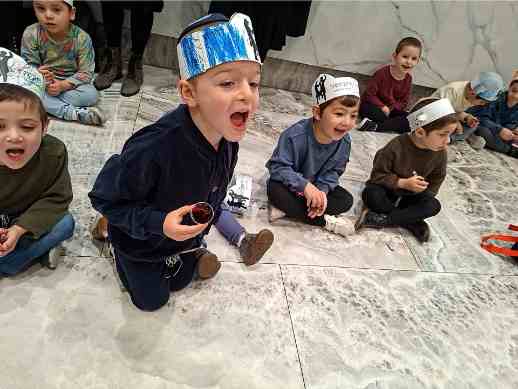 The preschool division held a lively and meaningful farbrengen. The children began with the 12 Pesukim and the Rosh Chodesh Kislev niggun, listened to the story of the day, and acted it out through movement and song.