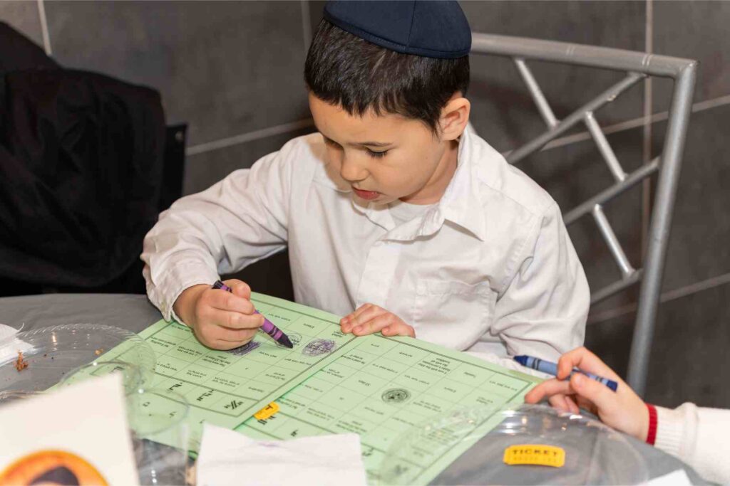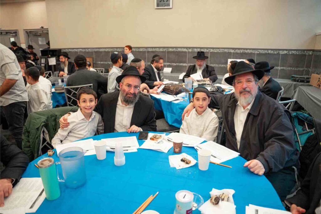Fathers and sons learned together, reflecting the theme of the Sicha: the importance of Torah being passed from generation to generation specifically through fathers and sons learning. The learning was followed by an interactive live bingo game, reviewing the Sicha in a fun and engaging way that had both children and parents participating with excitement.