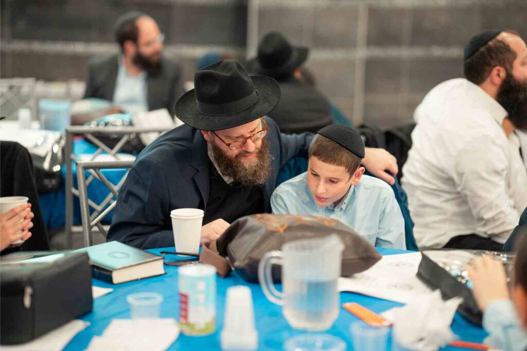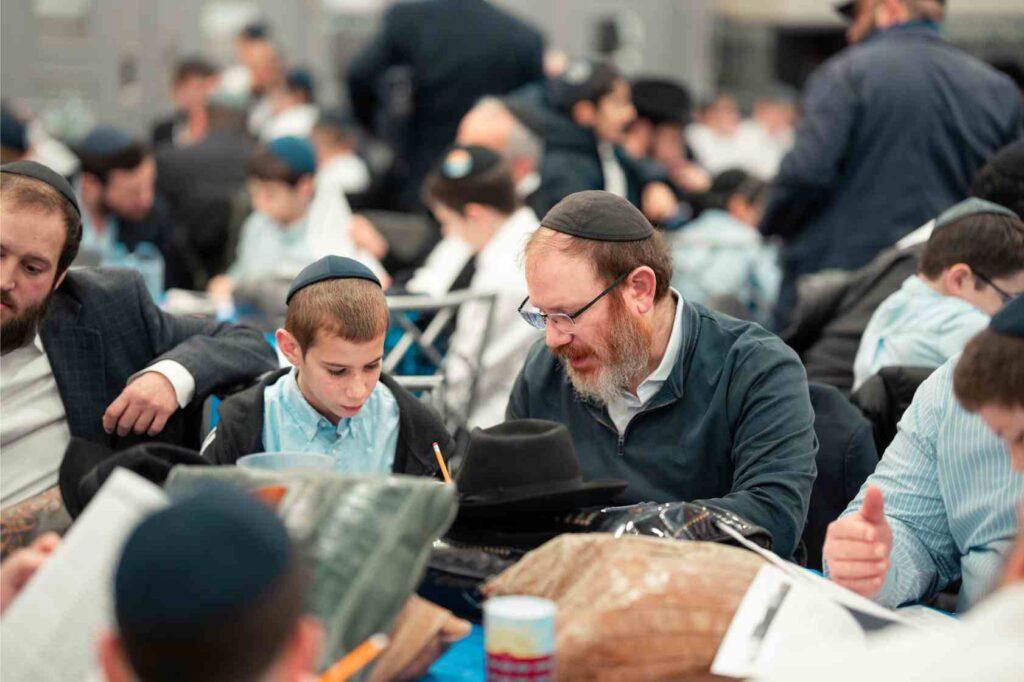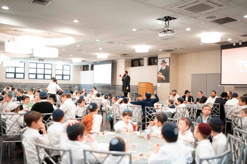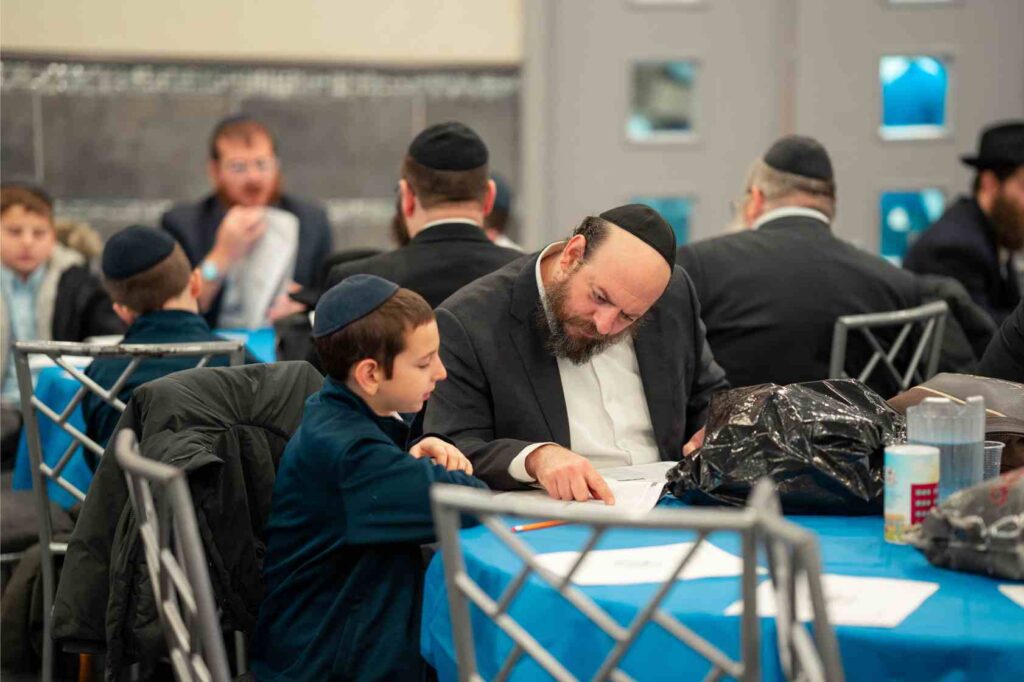 This past Motzei Shabbos, Tomchei Temimim hosted its annual Father and Son Melava Malka for the younger grades. The evening served as a beautiful opening to Chodesh Kislev, setting the tone was the in-depth learning of the possuk of Torah. Following the Rebbe’s hora’ah that every child should not only know the words but also the meaning of the Yud Beis Pesukim.