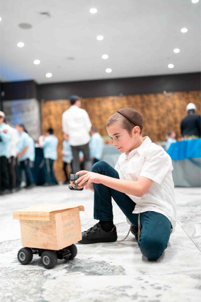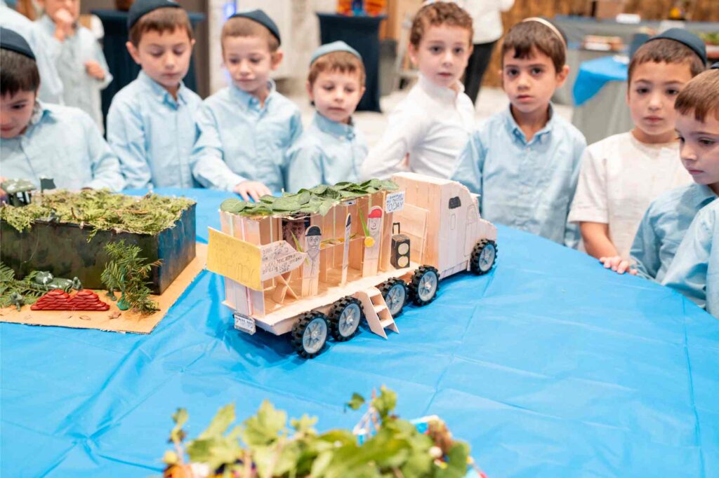 As Sukkos approached, the energy only grew stronger. The Talmidim built a huge Sukkah Mobile!. Each day of Yom Tov and Chol Hamoed was spent on Mivtza Lulav, as the boys set out across the neighborhood to help Yidden perform this precious mitzvah.