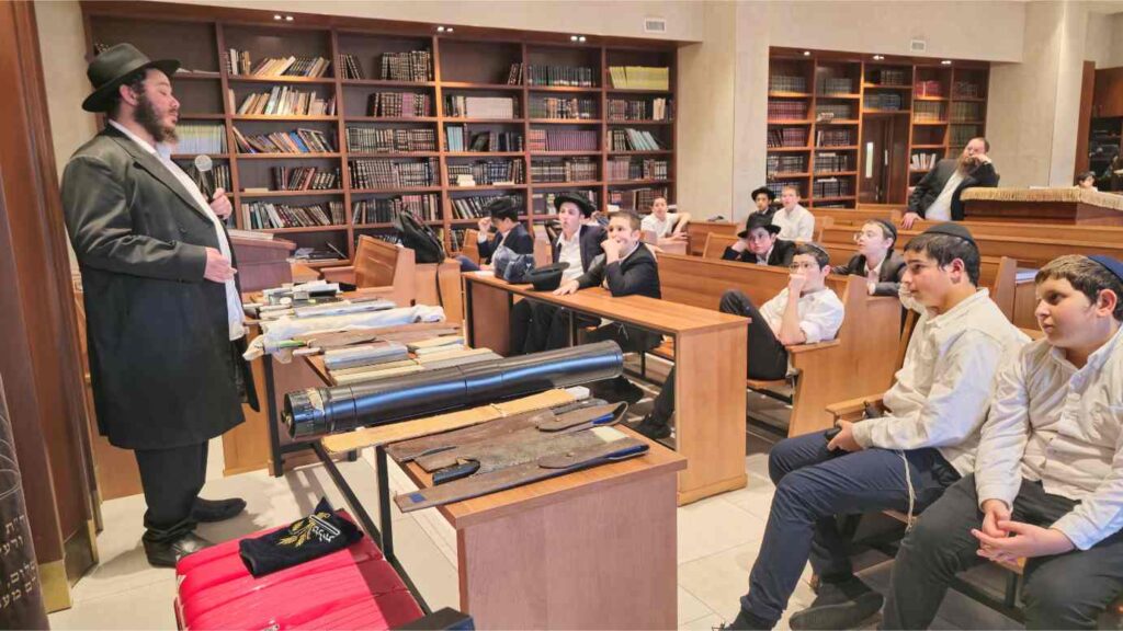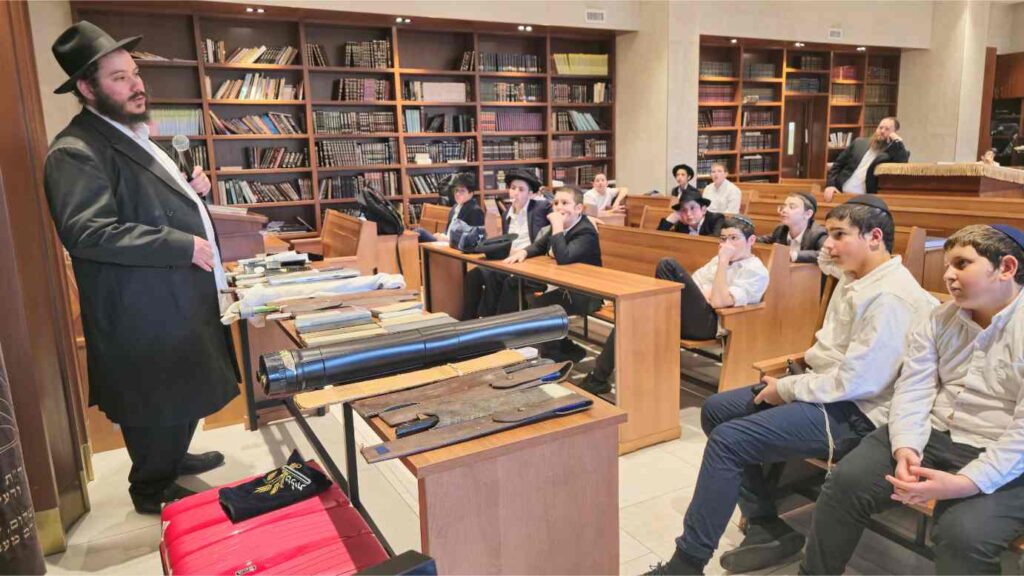 In the days leading up to Yom Kippur, the Talmidim delved into the topic of Teshuva, watched a video of the Rebbe’s Brocha on Erev Yom Kippur and joined a heartfelt Birchas Habonim. They also enjoyed a fascinating Shechita presentation by Rabbi Ezagui, who shared his experiences, displayed various types of Chalafim, and explained how each one is used. His hands-on demonstration brought halacha and avodah to life in a powerful and memorable way.